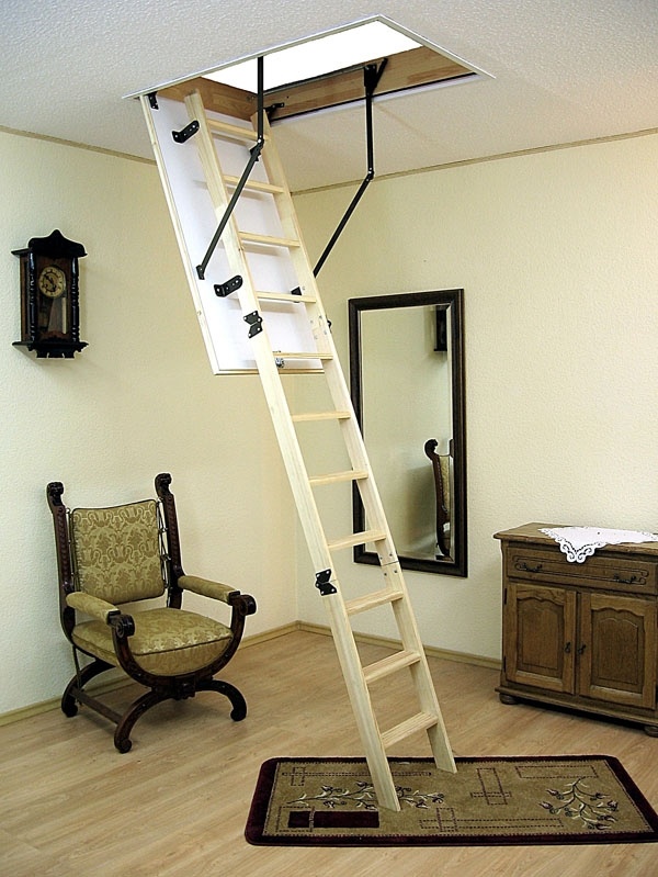 Складная лестница - то, что надо для нашего дома. И место свободным остается, и на чердак легко подняться. Нижние секции разбираются, ее можно закрыть и наверху, и внизу. Все соединения сделаны из стали, надежность и прочность на высоте.-