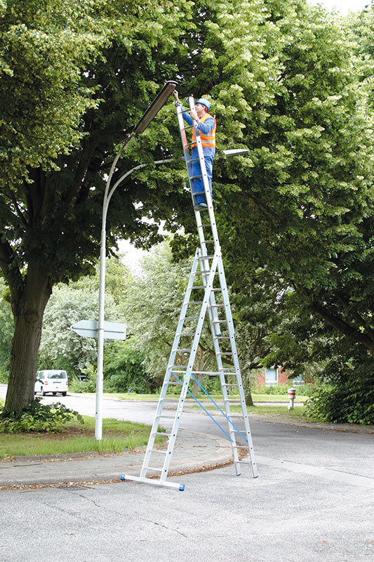 Универсальная алюминиевая лестница, используется как приставная, либо раздвижной лестница, или как лестница-стремянка с выдвигаемой третьей секцией.